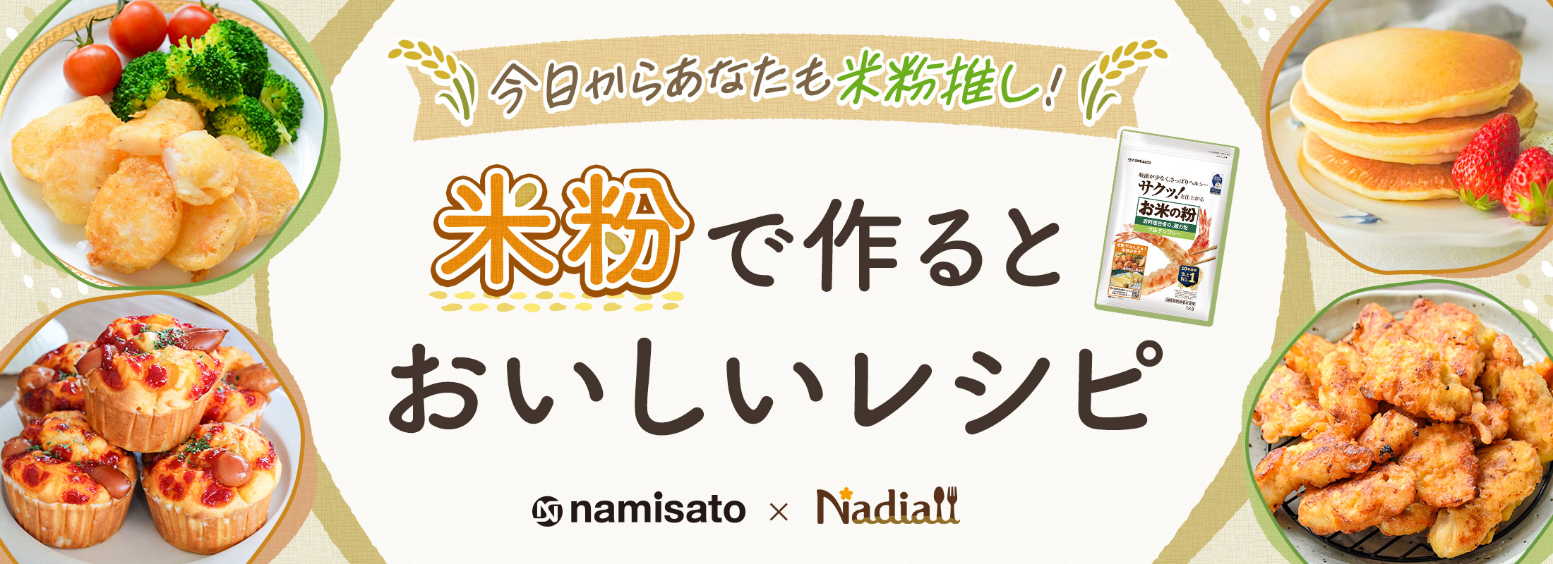 TOP / レシピ / 特集 / レシピサイトNadiaと波里のタイアップ企画「米粉で作るとおいしいレシピ」(10月)更新情報